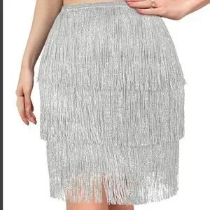 *NWT* Womens small silver sparkly fringe skirt