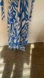 Blue and cream all over print cut out Square neck, tie back, with puff sleeves, long layered dress 100% polyester no stretch machine wash