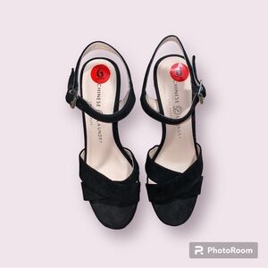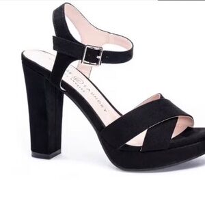 Elevate your style with these stunning black platform heels from Chinese Laundry. Featuring a sleek and modern design, these heels come with a sturdy block heel and a comfortable platform for added height and stability. The shoes have a chic crisscross strap design and an adjustable ankle strap with a buckle for a secure fit. Perfect for any special occasion or a night out, these heels are in excellent condition and ready to complement your wardrobe. Size 6