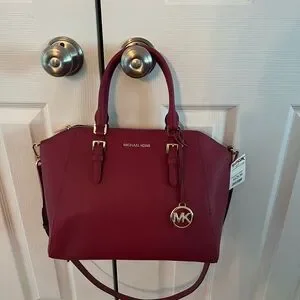 Michael Kors NEW Crossbody. Never Used. It’s more of a berry color. Beautiful inside and out. Approx 131/2 X 10. Has outside back slip pocket