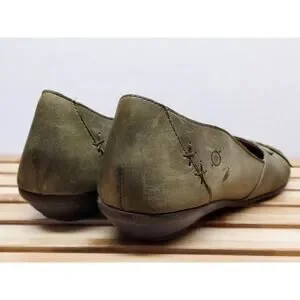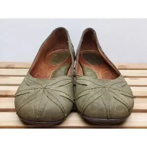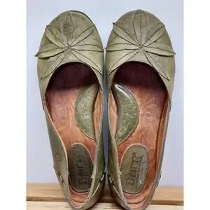 Born Womens | Green | Leather Round Toe Floral Ballet Flat Size 8.5