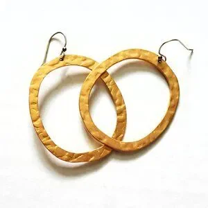 Vintage Artisan Large 2” Hammered Goldtone Oval Hoop Earrings Gypsy Pierced