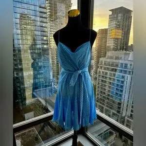 🆕 ALICE + OLIVIA 🧿 NWT Webber Cowl Neck Mini Dress, Blue Paradise