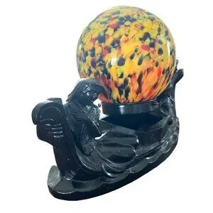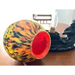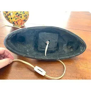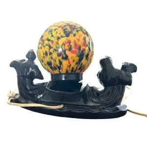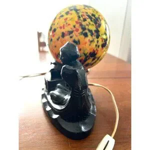 Antique Art NOVEAU Deco Lamp End of Day Glass Shade & Black Iron Base TESTED