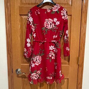THE CHILDREN'S PLACE Girl's XXL 16 Long Sleeve Red Floral Tie Ruffle Dress NWT