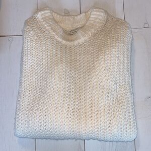 This is an American Eagle women’s cream colored cabled oversized slouchy sweater. It is soft and beautiful!