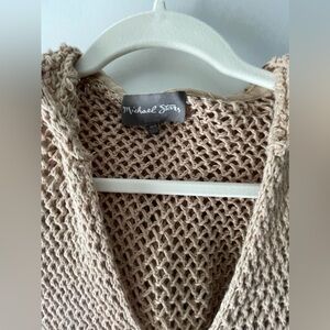 MICHAEL STARS KNIT/CROCHET/MESH HOODED SWIM COVER UP OR SWIM DRESS IN TAN SZ M/L