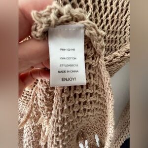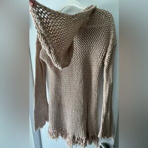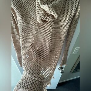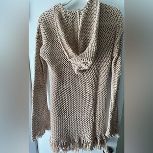 Cute hooded mesh/knit cover up with fringe. Color is a nude/tan. Size M/L