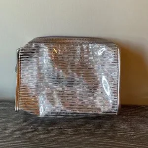 Large silver and clear makeup cosmetic case.