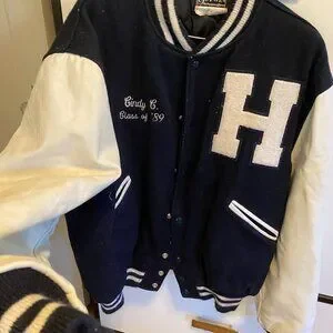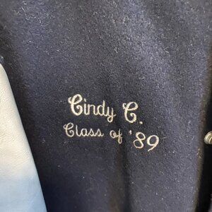 I mean, does it get any more classic than this? This was my high school varsity jacket as I was the queen of high school spirit in 1989. They don't make jackets like this anymore. It is clearly oversized as most things were in the 80's. My name is stitched on the jacket with the school year. It is very quilted and warm with cuffed sleeves and high school name on the back. Sleeves are that fun pleather material that you just can't find any more. The coat was obviously a special order at the time. It got lots of wear in my senior year of High School. Normal wear and tear for a jacket that is 35 years old. Great for a movie set/costome designer. Size is labeled 46 because I think it's typically a man's jacket. But because my name is stitched on it, I am listing for women. :) It's a very heavy/thick jacket with the quilting, wool & imitatation leather sleeves. Tag says it is 100% polyester, 85% processed wool, 5% other fibers & 10% unknown material. Hysterical. But made in USA. Please note the obvious; this is vintage. It won’t come in perfect off-the-shelf brand new condition. That is the beauty of of vintage. It is old, used and unique for someone new to use, enjoy and recycle ♻️ so we don’t have a disposable fashion economy.