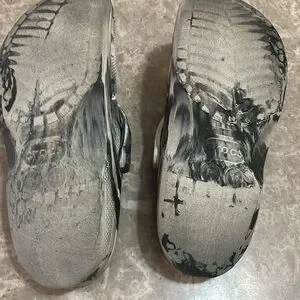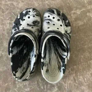 Zebra striped crocs (in good condition)