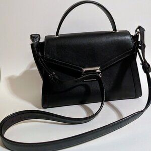 Michael Kors Whitney Leather Black Push Lock Satchel Crossbody Bag Medium Size