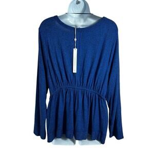 Caslon Cozy Waist Tie Peplum Top Sz Medium Blue Mazarine Long-Sleeve New