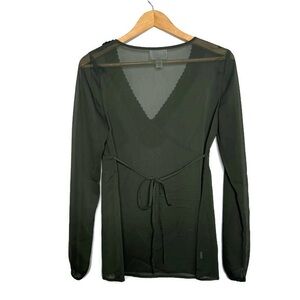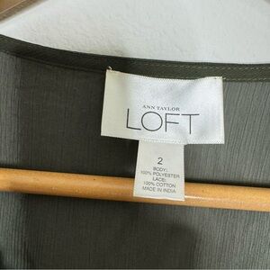Loft Sheer Green Long Sleeve Blouse Crochet Neckline Women’s Size 2