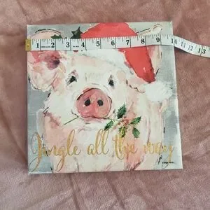 Christmas themed art in a 10"X10" frame. Cute little piggy dressed in Christmas attire, ready to jingle all the way with you!!