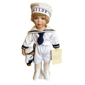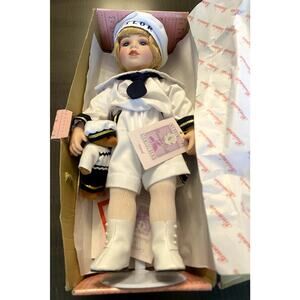 Camelot Rare Collectible Porcelain Hand Painted Sailor Doll with Bear with Stand