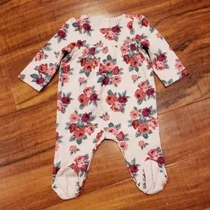 Janie and Jack NWT 0-3 months pink floral quilted footie one piece romper