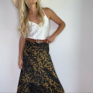 Lafayette 148 Black and Brown Animal Print Midi Dress