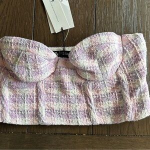 Zara Corset Half Textured Pink Purple Size M Top Crop top Bustier Tweed Plaid