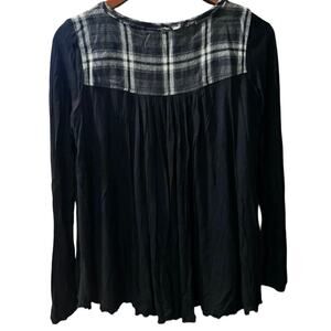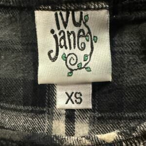 Ivy Jane Top Shirt Blouse Sz XS Black Embroidered Floral Birds Plaid USA