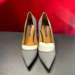 Ralph Lauren "purple label" black & white plaid 4 inch heel pumps. Size:39 (9)