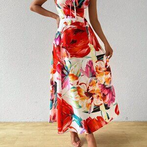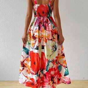 Multicolor Boho Women's Chest Strap Sleeveless Maxi Dress