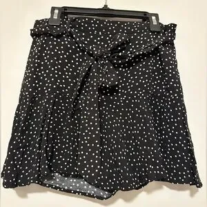 Zara Polka Dot Mini Skort Black and White tie belt size M