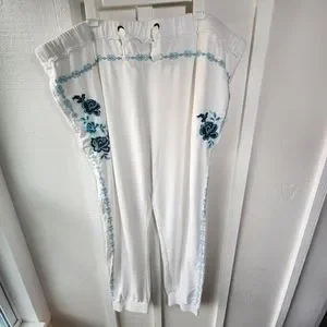 Sundance Faded Fields Joggers White Blue Embroidered Size XXL