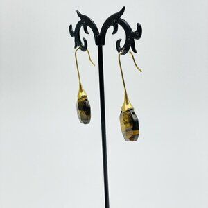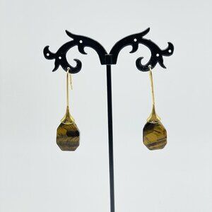 Simulated Tigers Eye Earrings Gold Tone Faceted Boho Festival Party Hippie