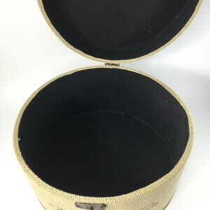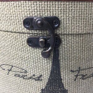 Round Storage Hard Box with Lid Fabric Linen Faux Leather France 7" H x 11" W. Very good condition, no damage, no stains, no smell.