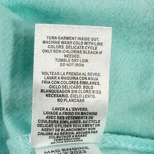 • Machine Wash Cold Delicate Cycle Inside Out Tumble Dry Low