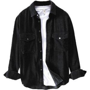 Men's Corduroy Shirts Jacket Sherpa Bomber Casual Long Sleeve Winter Coats