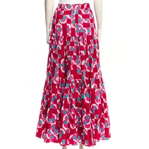 This bright colored cotton-poplin skirt features side-slit pockets. The voluminous three-tiered ruched skirt with elastic waist can be worn multiple ways. You can wear it up high as a strapless maxi dress ( it looks great belted ),or traditionally on your waist or slung low on the hips. The skirt is new without tags. I do not accept offers or bids on this item as I would like it to go through inspection and authentication. Thank you.