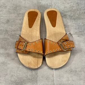 ISABEL MARANT Women's Tan Leather Jaso Eyelet Slide Clog Sandals SZ 9