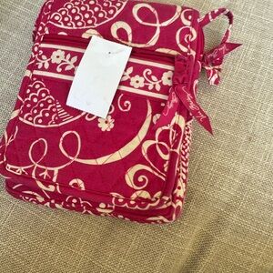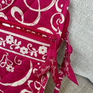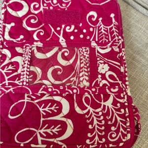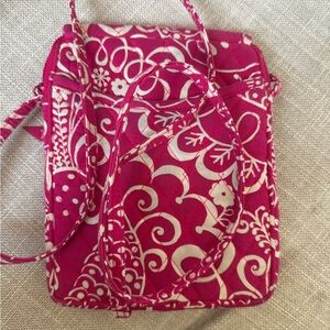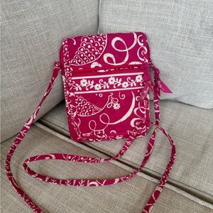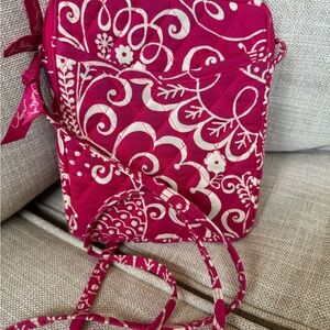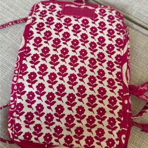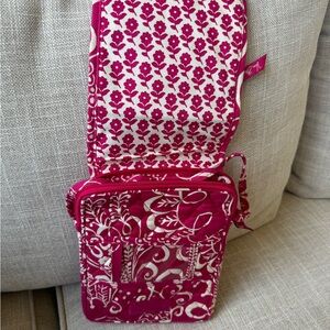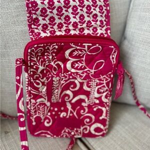 Vera Bradley crossbody with credit card slot and multiple pockets. In like new condition clean interior and exterior. Fits iPhone pro max. Keys make up credit card. Has front and back pockets. Clear photo ID slot in front of bag.