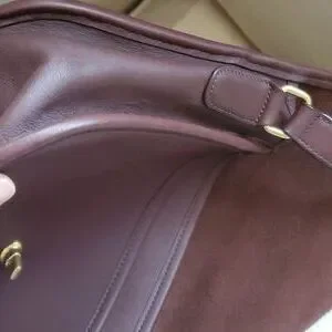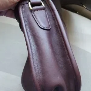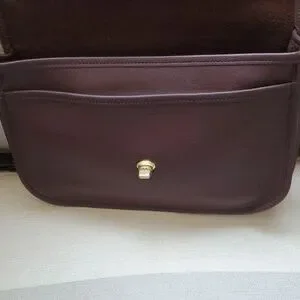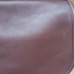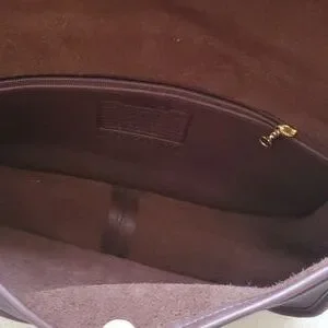 Beautiful brown leather with cleaned interior. Minor scratches and scuffs otherwise in good condition. 11 wx10 hx3.5 d