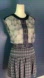Sleeveless Aymeline MAX AZRIA dress with modern look & feminine charm. It has a round neck, Two mini print semi-sheer fabrics with solid navy fabric inserts and navy lace, soft pleats, approx. 18" skirt, hidden zip to waist with fabric covered buttons to close open back design. Poly/silk combo, machine wash, lovely well made garment, fine mesh behind lace panels. Web ID 950112. No longer available at Bloomingdales. Gorgeous- delicate and feminine mini dress.