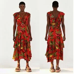 FARM Rio Red Forest Birds Maxi Dress