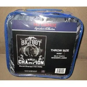 You will receive a brand new ultra soft throw blanket showing a comical close up of the Big Foot character with the words Hide and Seek Champion around him. We know you will love this new throw. Thanks for reading.