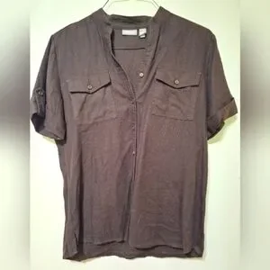 NWOT Chico's women's size 1 US 8 100% linen brown shortsleeve button up top