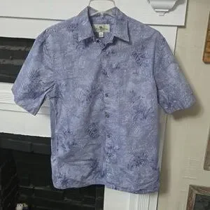 great used condition. Island Shores. Tropical. Small. 💯 Cotton grey and silver. chest 21 inches. length 29 inches. B6