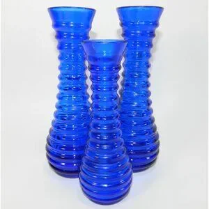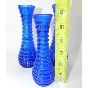 Cobalt Blue Ribbed Glass Vases Depression Glass Beehive Bud Vases Set Of 3