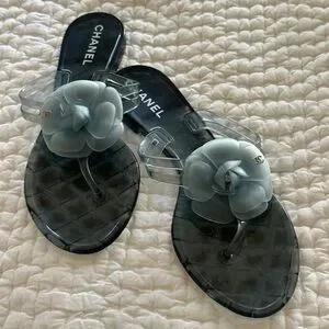 CHANEL Camellia Blue Jelly Thong Sandal, size 38