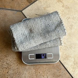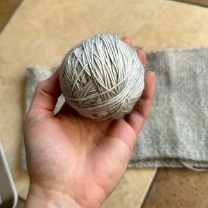 Gorgeous neutral single ply wool, partially knit up in linen stitch, so you can how beautiful the wool looks knit up. This yarn can most definitely be reclaimed by unravelling and soaking the yarn to remove the knit kinks.