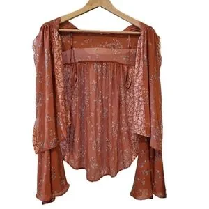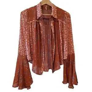 Free People bohemian blouse floral print button-up bell sleeves flowy feminine