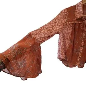 * Style: Bohemian floral button-up blouse with bell sleeves