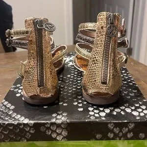 Sam Edelman Sandals Size 6 Georgina Rose Gold Zipper in the back Worn