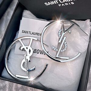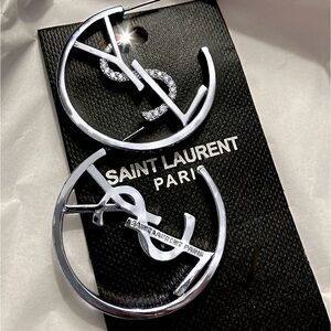The most beautiful set of Authentic YSL Saint Laurent Earrings have ever both seen and/owned . Approximately 1.5 inches in size with iconic logo on front hoop. Comes in original retail packaging. See all pictures and please reach out with any questions/concerns emote purchasing.