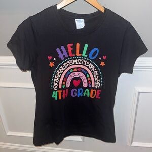 📚 HELLO 4th GRADE! Leopard Boho Rainbow 1st Day Of School T-Shirt Girls Tee - S