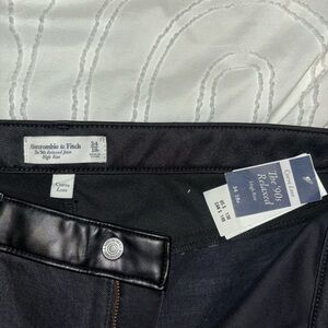 Brand New with tags Abercrombie mixed material black and leather denim jeans! Size 34!